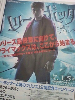 3D上映については↓こちら 109シネマズIMAXシアター 映画の公開から2週間経ったので、 3D上映と映画自体の感想書きたいと思いますが、 映画と原作のネタバレ含むので一応畳んでおきます。 「ハリー・ポッターと謎のプリンス」をジャパンプレミアで見てから、 15日の世界展じゃなくなっちゃった伊勢丹のグッズフェアに行った帰り もう一度見ようかと思ったら全然空き席が残ってなかったので その日は「ノウイング」を見て帰宅。 本日7月19日は、新宿ピカデリーの1周年記念日だそうで、 水曜日でも1日でもないのにサービスディだったので、 リベンジとばかりにまずは吹替版を鑑賞。 吹替版で見たら初回見た時よりも理解が深まって良かったです♪ 入り口でワーナーからのアンケートが配布されたので、 聞かれてない事まで想いのたけを書き綴って来ましたよ☆ グッズフェアにも顔を出しましたが、今日も大盛況でした。 続けて「アマルフィ」も鑑賞。 ちょっとツッコミ所あったけど素敵な景色とサラ・ブライトマンの歌声にうっとりでオモシロかったです。 で、劇場を出たら新宿の空に見事な虹が! 携帯で撮ったからよく見えないけど2重にかかってて、 こんなくっきりした虹見た事ないくらい本当にキレイでした♪ 新宿ピカデリーの1周年もハリポタの公開も 祝福してくれてるようで嬉しかったです(^ー^* ) 明日はいよいよ3Dで見て来ます♪ 2年ぶりのフクロウがジャパンプレミアの招待券持って来てくれましたぁ~!! しかも15組しか当たらない狭き門をくぐって(:_;) まだこれから締切の応募情報もあるし、 皆さん頑張りましょうp(*^-^*)q 応募情報 「ハリー・ポッターと謎のプリンス」公開記念キャンペーンとして、 新聞各紙から参加できるキャンペーンが行われています。 1面ぶち抜きの大きな広告で、携帯専用ですが下記のデジタルコンテンツがもらえるキャンペーンです。 ・au one GREE/モバイル版 GREE 「きせかえプロフ」 ・mixiモバイル 「mixiコレクション」 ・デコとも 「デコメールテンプレート」 6/17の読売新聞朝刊を逃したので、 今朝は朝日新聞だ!と気づいて朝刊をなんとかゲット♪ 次回は6/22中日新聞朝刊に掲載されるようです。 詳しくは公式サイトの最新情報ページへ。 入手できなかった方のための入手方法も載ってます。 http://wwws.warnerbros.co.jp/news/harrypotter/