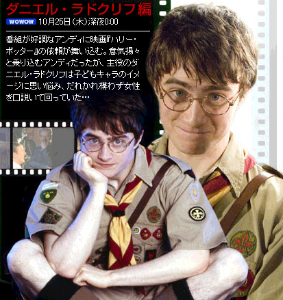10月25日(木)深夜24:00~24:30 WOWOWで放送されるイギリスのコメディ番組「エキストラ2:スターに近づけ!」にダニエル・ラドクリフ君が出演します。 WOWOW見れる方はお見逃しなく! このコメディドラマの主役、しがないエキストラ専門の俳優アンディに映画ハリー・ポッターの依頼が舞い込み、意気揚々と乗り込むと、主役のダニエルが子どもキャラのイメージに思い悩み、だれかれ構わず女性を口説いて回っていた…。 というUKらしい大人向けブラックコメディみたいで、設定が微妙ではありますが、ダニエル君がコメディに出てるという事で見てみたいです。 この番組はこれまでもケイト・ウィンスレット、サミュエル・L・ジャクソン、オーランド・ブルーム等多彩な俳優さんが出演していて、今後も私がダンブルドアをやって欲しかったイアン・マッケランやロバート・デ・ニーロも出演するらしいので、今後のエピソードも見てみたい気がします。 WOWOW見るようになってからたまにUKコメディ番組を目にするんですが、やっぱりコメディもUKらしくブラックなものが多いですね。 とにかく見たらまたレポートしたいと思います♪ そして、ハリポタファン仲間がどんどん「不死鳥の騎士団」のDVD予約を済ませる中、どれにしようかとずーっと悩んでました。「不死鳥の騎士団」は初めての3枚組で特別版単品でも特典満載ですが、結局「第1章~第5章プレミアム・ボックス」を予約してしまいました♪ もちろんこれまでの特典付きDVDは全部持ってるからかぶっちゃうし、多分全7作完成したらコンプリートボックスが発売されると思いますが、12枚組で、私が一番見たかった過去の作品のメイキングも含み、未公開映像が207分、3時間以上も入ってるんですよ~! 全作完成まで待ちきれない私のために作ってくれたような初のボックスセットなのでやっぱりこれを買っとかなくてはと。 今から11/21が待ち遠しいです!! 「不死鳥の騎士団」だけでも通常版の他に色々なバージョンがあるので、ここでご紹介します。 ■ハリー・ポッターと不死鳥の騎士団 特別版【DVD3枚組】 <特典映像> 【Disc.2】未公開シーン集/メイキング/トンクスと行く不思議ツアー/編集にチャレンジ 【Disc.3】メイキング1~3 ■ハリー・ポッター第1章~第5章 プレミアム・ボックス【初回限定生産:DVD12枚組】 <映像特典> 日本初公開映像を含む、合計約610分に及ぶ豪華映像特典を収録! ◇『ハリー・ポッターと賢者の石 特別版(2枚組)』(映像特典約26分) ダイアゴン横丁/校庭/図書館/魔法の授業/ホグワーツ・ツアー/インタビュー集/組分け帽子 ◇『ハリー・ポッターと秘密の部屋 特別版(2枚組)』(映像特典約71分) ・ゲーム・プレビュー ・未公開シーン集(19シーン) ・ロックハート先生の教室(スチール・ギャラリー/証明書/課題図書) ・課外授業:DVD-ROMコンテンツへ ・ホグワーツの裏側(J.K.ローリング他インタビュー/キャスト達のインタビュー/メイキング/校長室ツアー/プロダクション スケッチ・ギャラリー) ・課外活動(秘密の部屋ゲーム/禁じられた森ゲーム、コリンの暗室/ダイアゴン横丁ツアー) ・呪文テスト ◇『ハリー・ポッターとアズカバンの囚人 特別版(2枚組)』(映像特典約88分) ・占い学:トレローニー先生の水晶玉(未公開シーン集)/映画の出来るまで/シュランケン・ヘッドの頭(キャスト・監督・J.K.ローリングのインタビュー集7種類) ・大広間:スキャバーズを捕まえよう!(ゲーム)/聖歌隊の練習/カドガン卿の冒険 ・闇の魔術に対する防衛術:見逃したかもしれない魔法(ゲーム) ・ルーピン先生の教室ツアー ・ハニーデュークス・ツアー ・ホグワーツの校庭:ハグリッドの小屋(魔法生物飼育学/場面を作る)/ゲーム・プレビュー ・予告編:ホグワーツ1年目/ホグワーツ2年目/ホグワーツ3年目 ◇『ハリー・ポッターと炎のゴブレット 特別版(2枚組)』(映像特典約108分) ・ドラゴンの競技場:ゲーム(三大魔法学校対向試合 第一の課題)/メイキング(ハリーvs.ホーンテール)/代表者たちの一日 ・湖:ゲーム(三大魔法学校対向試合 第二の課題)/メイキング(水の中へ) ・迷路:ゲーム(三大魔法学校対向試合 第三の課題)/ゲーム(墓場へ)/メイキング(恐ろしい迷路)/名前を言ってはいけないあの人 ・ホグワーツ城:未公開シーン集/ダンスパーティーの準備/キャストたちとの出会い/4作目のこと ◇『ハリー・ポッターと不死鳥の騎士団 特別版(2枚組)』(映像特典約110分) ・未公開シーン ・トンクスと行く不思議ツアー ・編集にチャレンジ ・メイキング ◇ボーナス・ディスク(映像特典約207分) ・『ハリー・ポッターと賢者の石』:メイキング ・『ハリー・ポッターと秘密の部屋』:メイキング ・『ハリー・ポッターとアズカバンの囚人』:メイキング、アルフォンソ・キュアロン監督のインタビュー ・『ハリー・ポッターと炎のゴブレット』:撮影の舞台裏、撮影の舞台裏(動物編)、メイキング ・『ハリー・ポッターと不死鳥の騎士団』:メイキング ■ハリー・ポッターと不死鳥の騎士団【Blu-ray Disc】 <特典映像> フォ